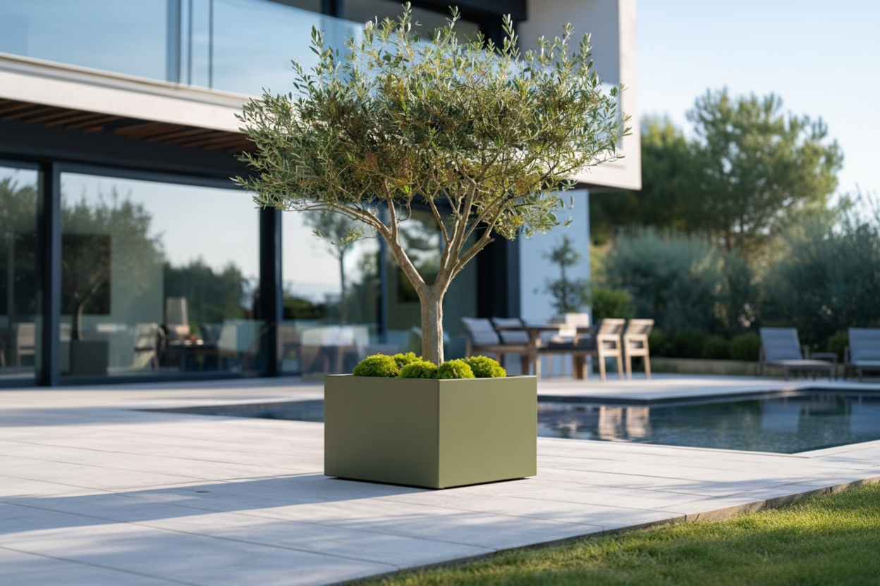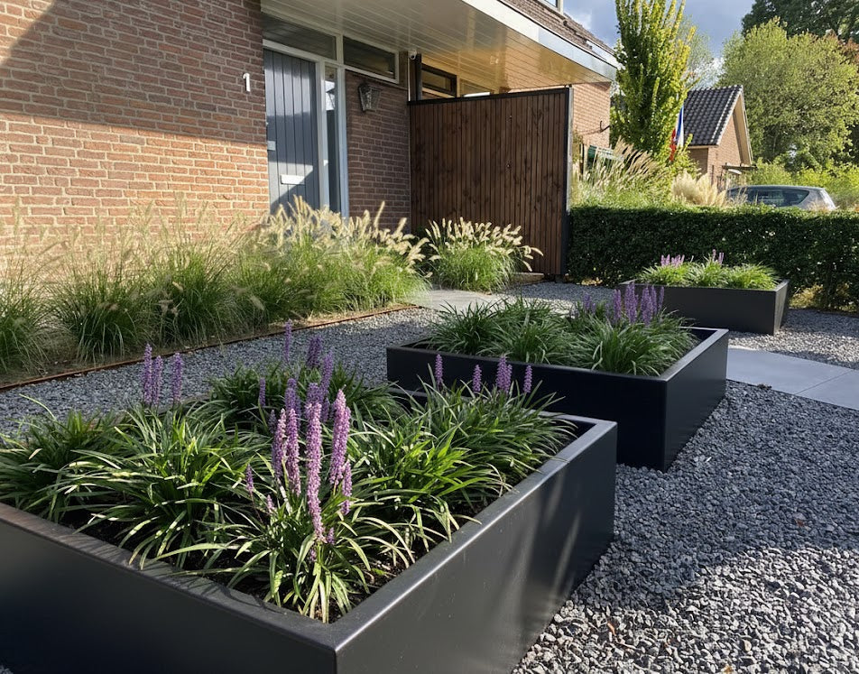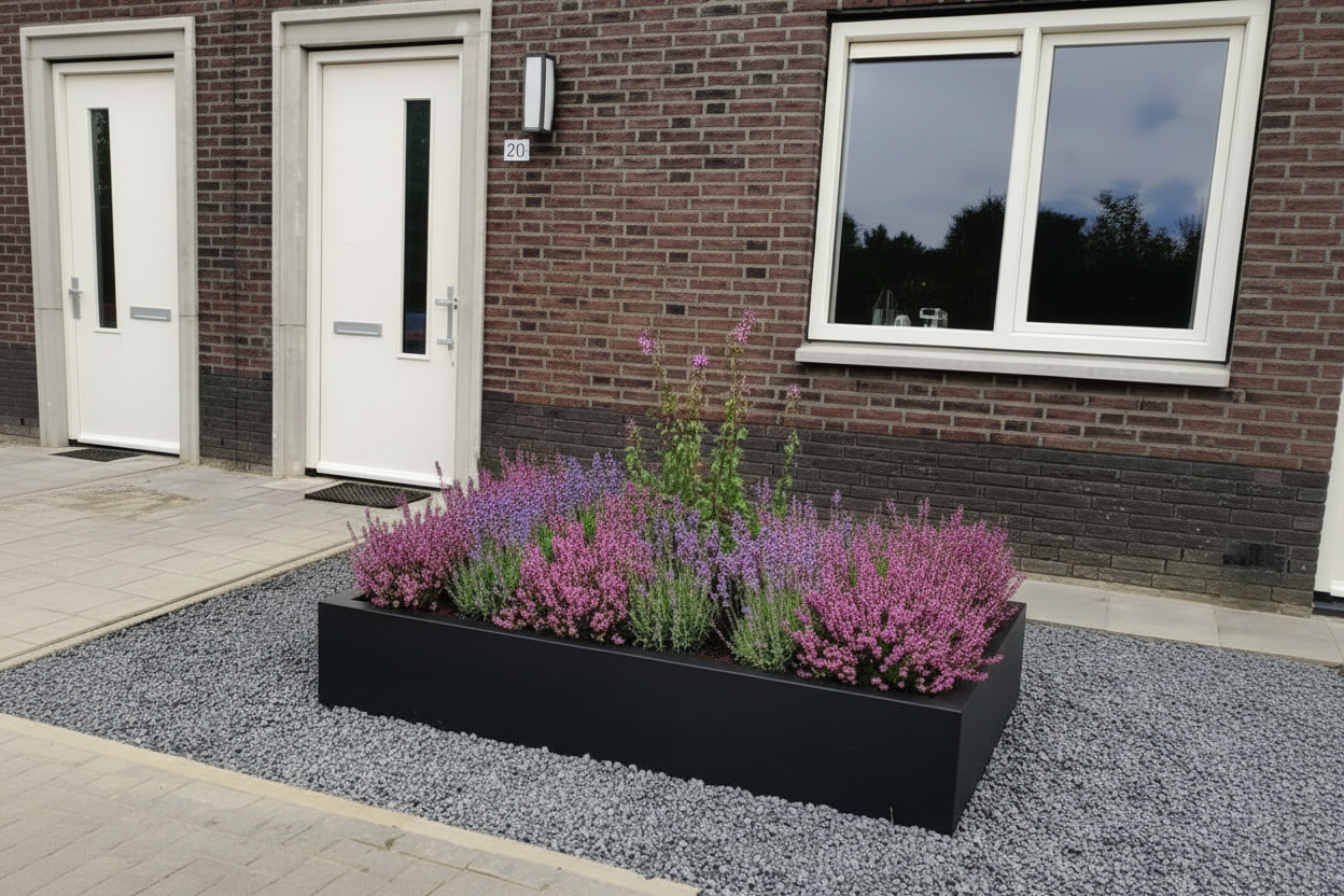 Onze duurzame aluminium bloembakken vormen de perfecte basis voor een luxe tuin of zakelijke entree, beschikbaar in zowel tijdloze standaardmodellen als uniek maatwerk.